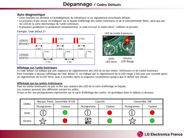 Les codes défauts sont des messages d'erreur affichés par le système de climatisation pour indiquer un problème spécifique. Ils sont conçus pour aider les utilisateurs et les techniciens à diagnostiquer rapidement la source de la panne. Il est important de noter que chaque code correspond à un problème particulier, allant des problèmes mineurs aux pannes majeures.